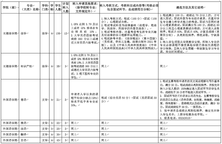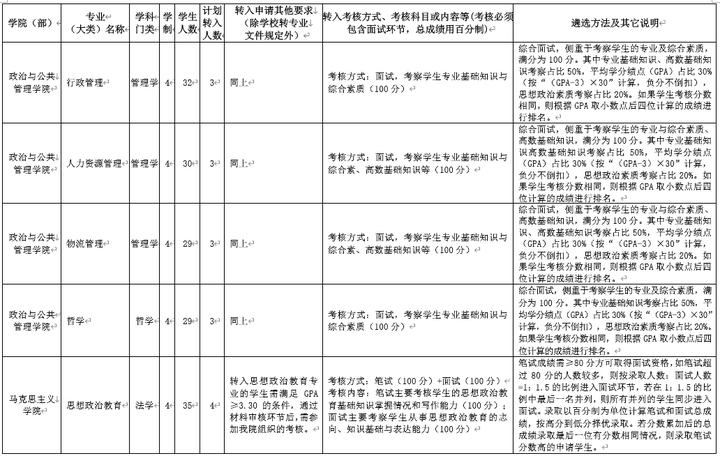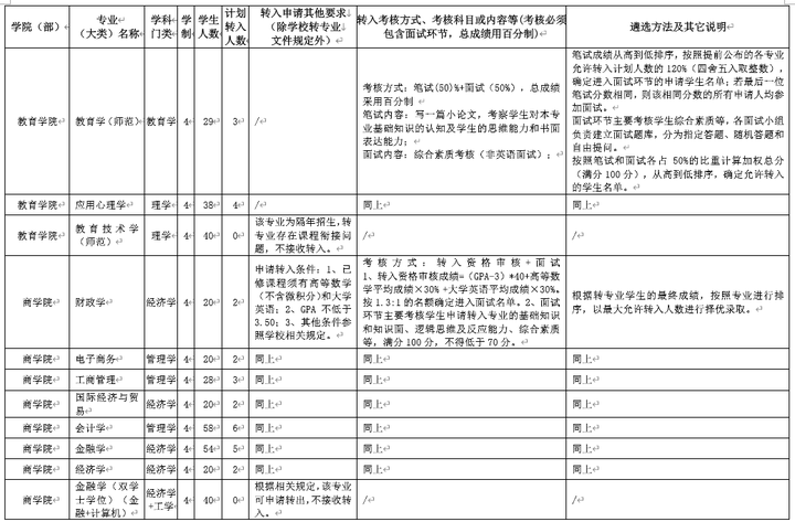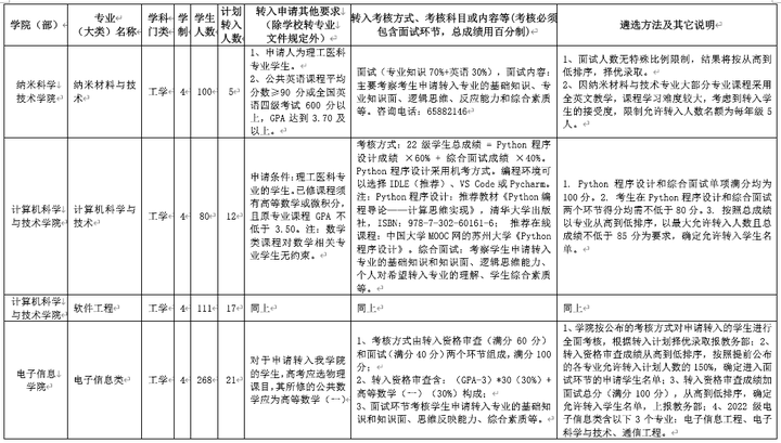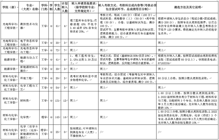 在文件中会给出当年各专业的转入要求,并且会给出转入条件(有些专业无特定转入条件)、考核方式、考试内容以及遴选方法等信息,有些会给出参考教材。不过,受限于篇幅,表格中给出的内容不可能详尽,具体内容还是建议自行咨询转专业成功的学长/学姐,以获知相关经验。